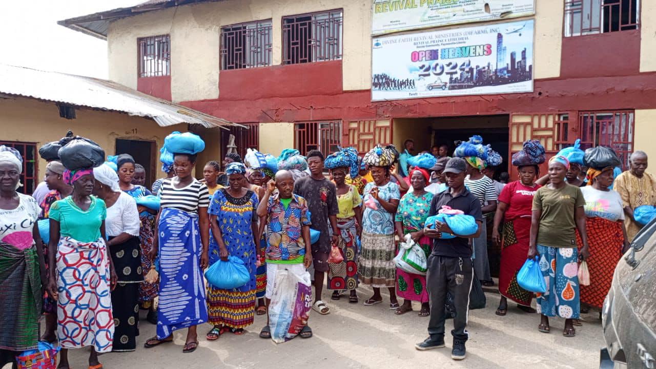 To move towards a self-sustaining organization, we put a down payment to purchase a 10-acre (40.000 m2) farmland. Currently, the farm is cultivated with 250+ plantain trees and some cassava as well. The first harvest is expected in 2024. To celebrate Christmas, a one day church service was organized. Furthermore, over 85 bags of rice were distributed to 283 women in the Kizito and Zayzay communities, as well as at the Unity Christian Center.